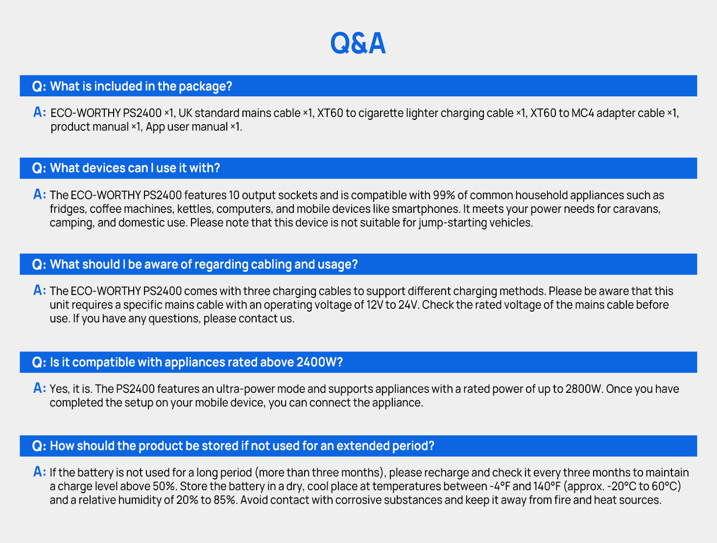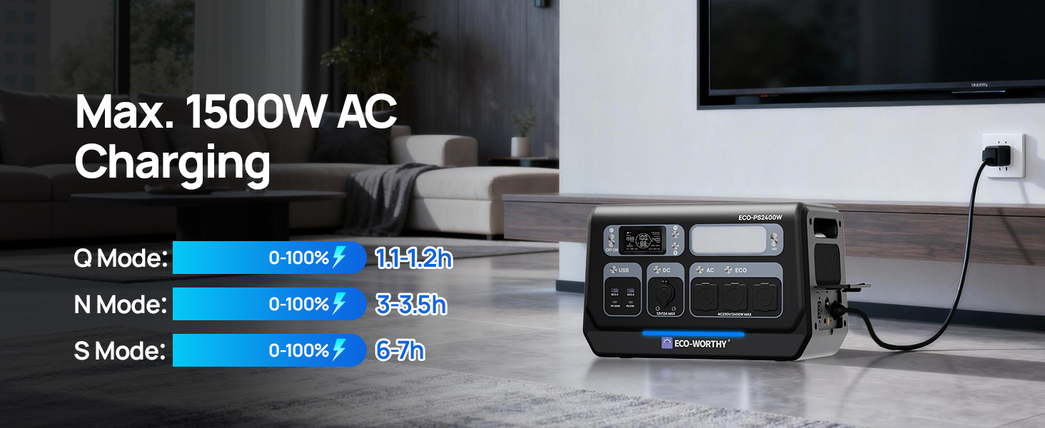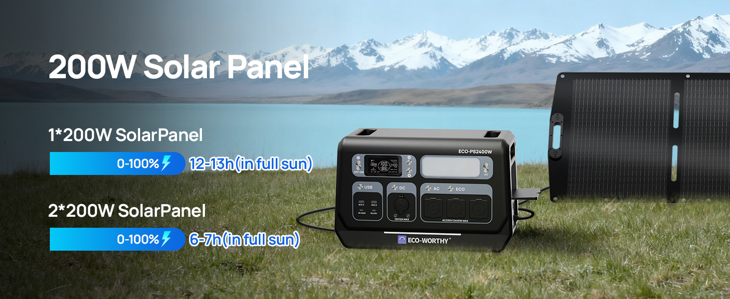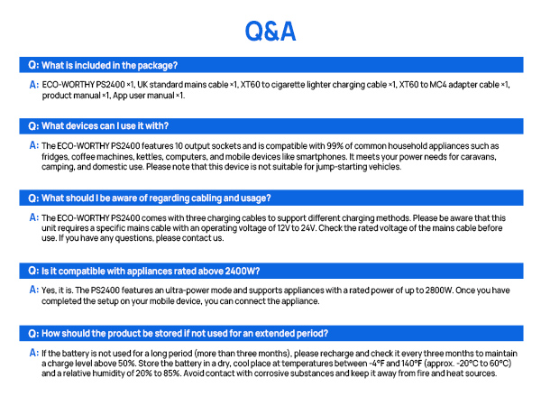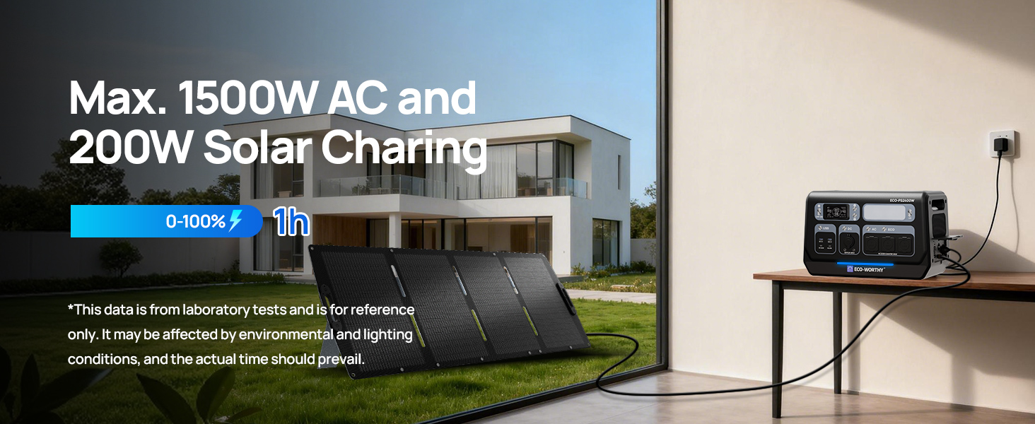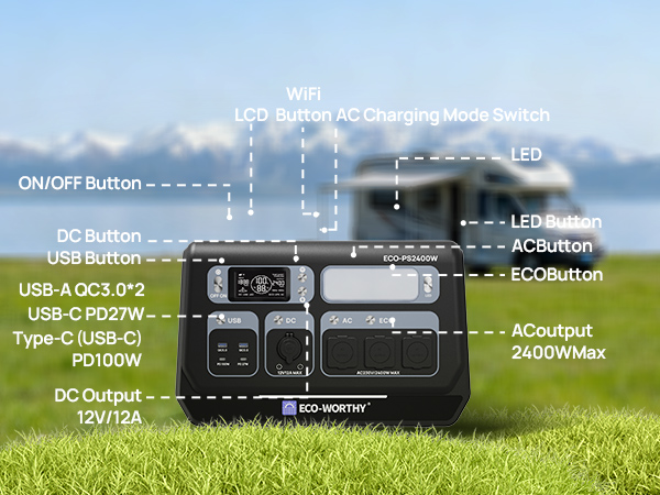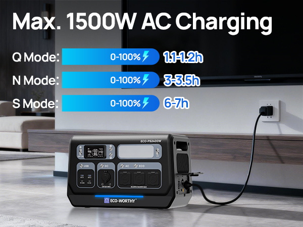 The ECO-WORTHY PS2400W provides 2400W of continuous power and a large 2048Wh capacity, with a peak power of up to 4800W, sufficient to power high-wattage appliances.